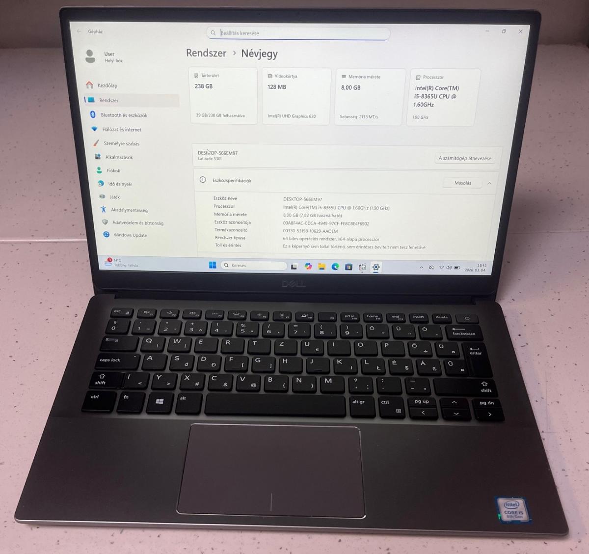 | Processzor típus | Core i5, 8th gen |