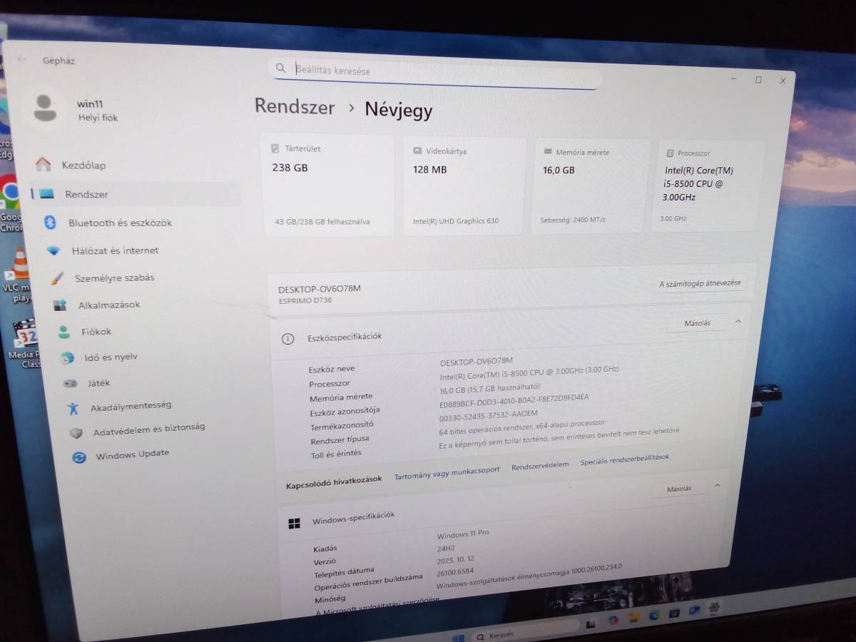 Processzor paraméterei | Intel® Core™ i5-8500 Processor 9M Cache, up to 3.50 GHz |