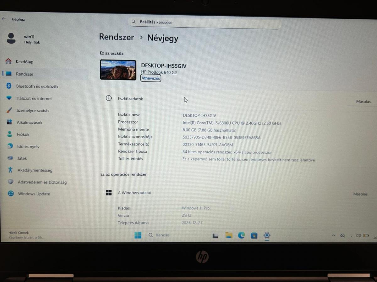 HP Probook 640 G2A kategória Core i5, 6th gen, Skylake / 8GB / 128GB / SSD (M.2) / 14inch / Újszerű , 1366*76839 900 FtHP Probook 640 G2 #13361