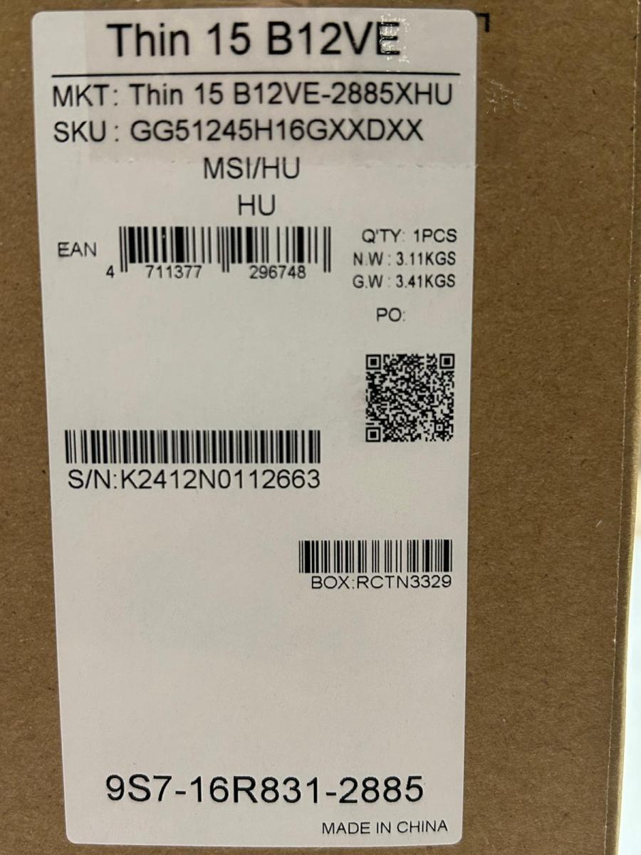 MSI Thin 15 B12VEÚjszerű Core i5, 12th gen / 16GB / 1000GB / SSD (M.2, NVME) / 15.6inch / Újszerű , 1920*1080329 000 FtMSI Thin 15 B12VE #13325