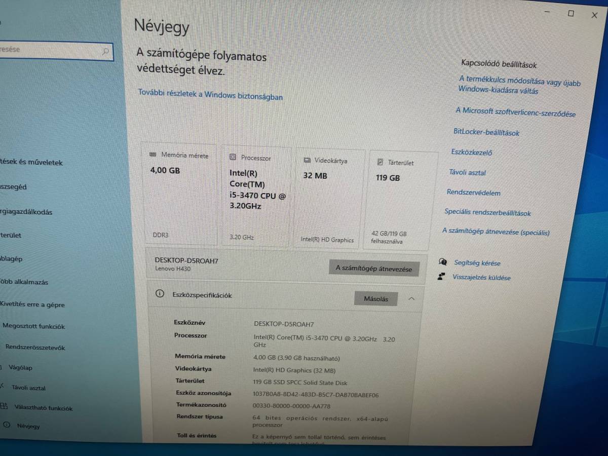 | Processzor paraméterei | Intel® Core™ i5-3470 Processor (6M Cache, up to 3.60 GHz) |