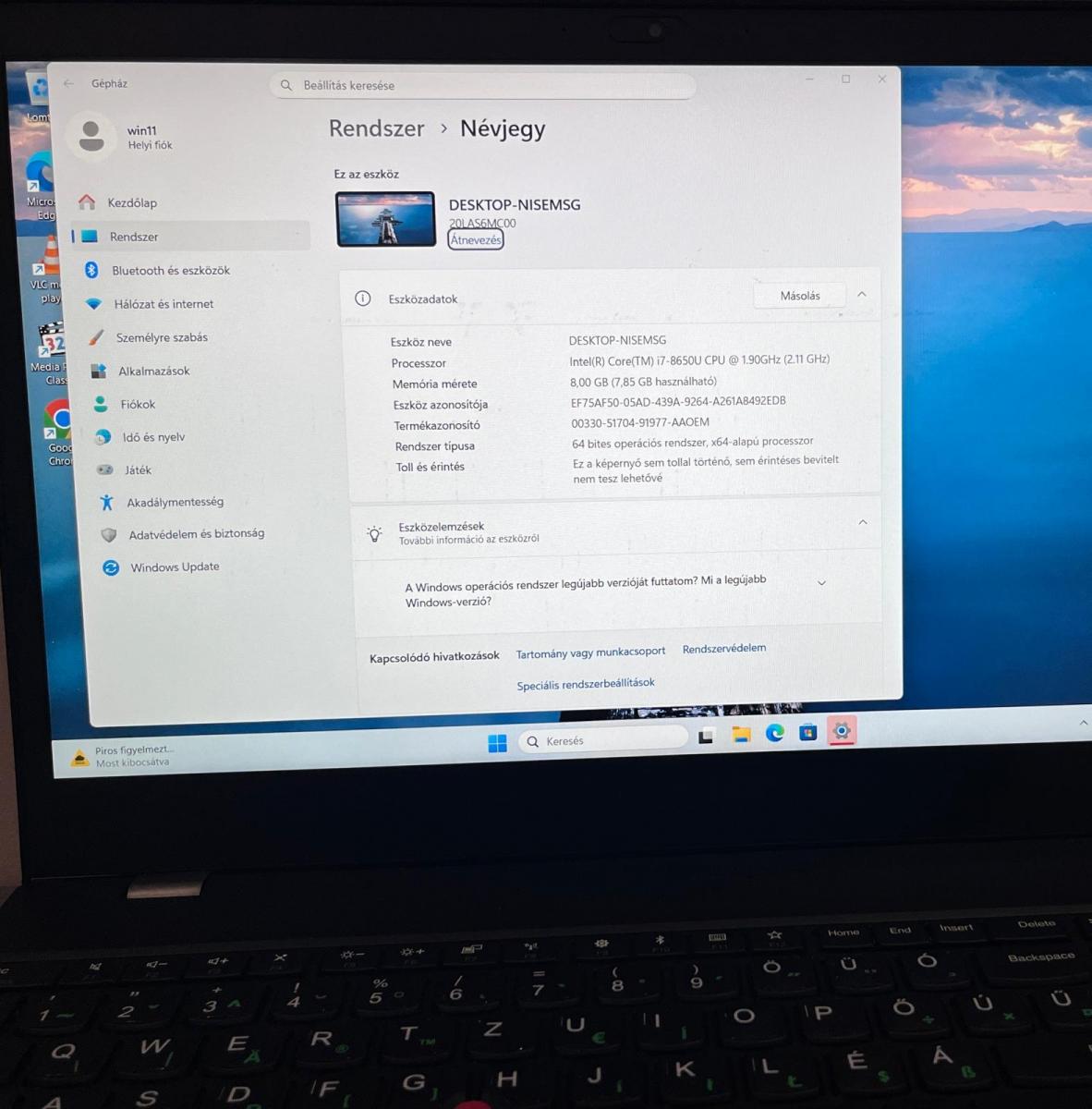 | Processzor paraméterei | Intel® Core™ i7-8650U Processor 8M Cache, up to 4.20 GHz |