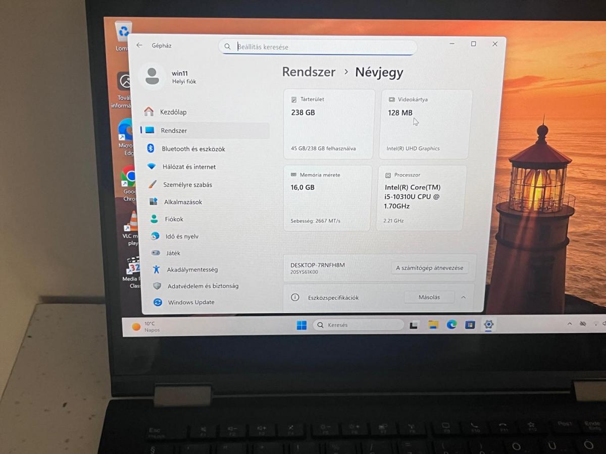 | Processzor paraméterei | Intel® Core™ i5-10310U processzor 6M gyorsítótár, akár 4,40 GHz |