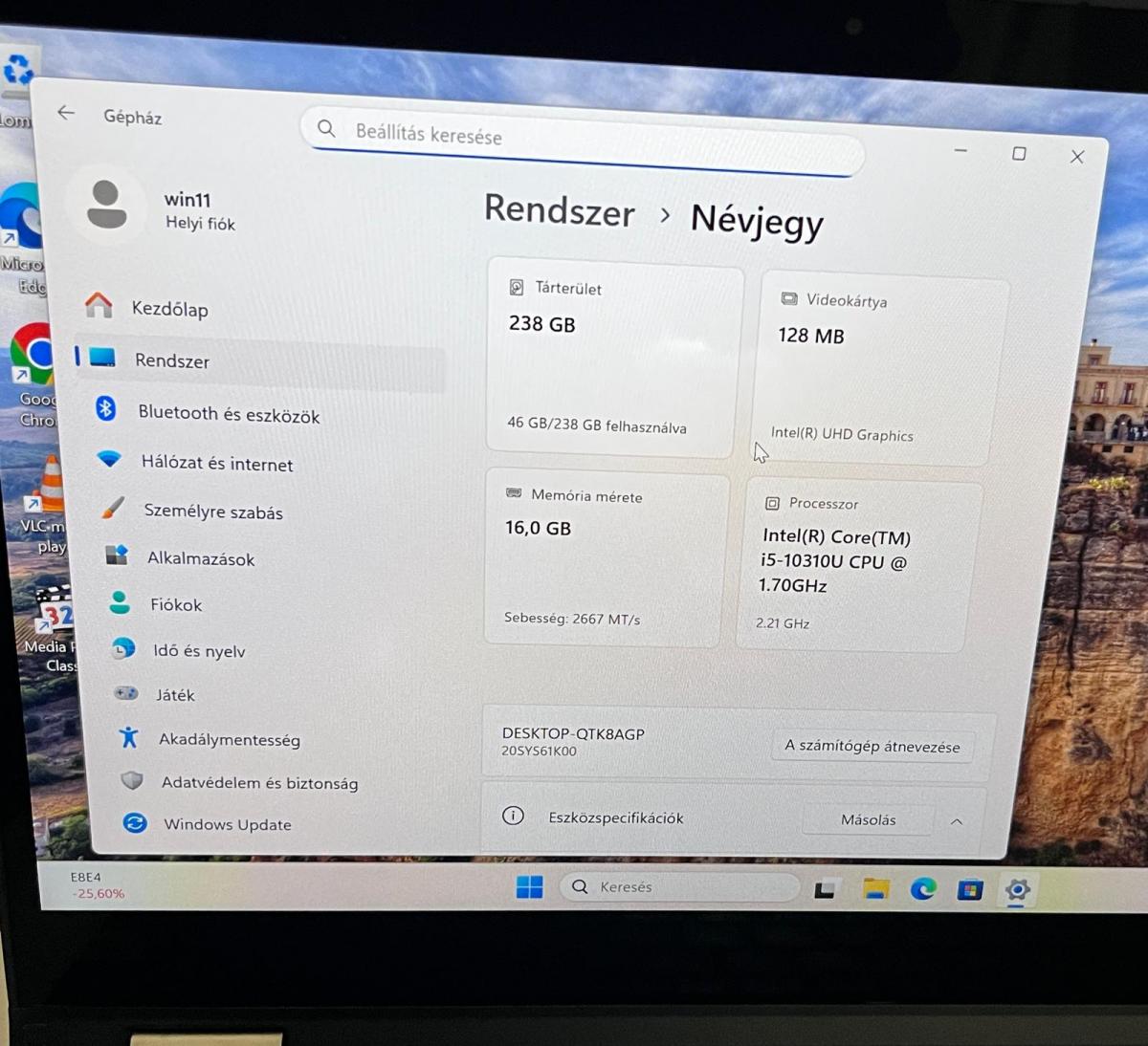 | Video vezérlő | Intel UHD Graphics |