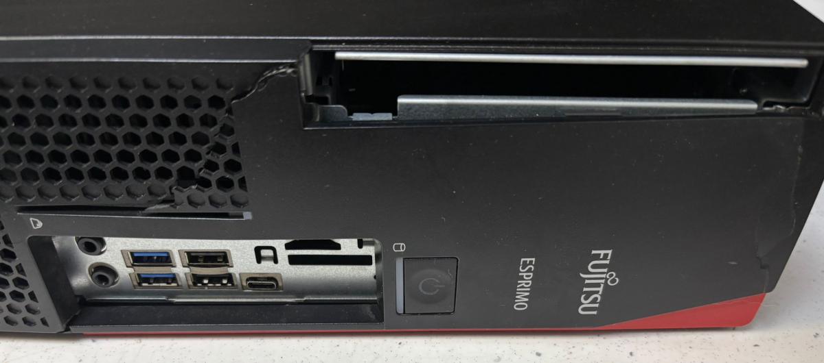 SSD meghajtókÁllapot B kategória Alaplapi chipkészlet FUJITSU Desktop ESPRIMO D738 Processzor foglalat LGA 1151 Processzor típus Core i5, 8th gen Processzor órajel 3 GHz Processzor paraméterei Intel® Core™ i5-8500 Processor 9M Cache, up to 3.50 GHz Processzorok száma 1 db RAM típusa DDR4 RAM mérete 16 GB Merevlemez mérete 256 GB Merevlemez típusa SSD (2.5") Hangkártya HD (High Definition) Audio Optikai meghajtó formátuma Nincs Optikai meghajtó Nincs USB port típusa USB 2.0 + USB 3.0 + USB Type-C USB portok száma 11 db Hálózati vezérlő Gigabit Video vezérlő Intel® UHD Graphics 630 Videokártya foglalat PCI-Express SATA portok száma 5 db M.2 foglalat 1 RAID vezérlő Nincs SLI / Crossfire Nincs Számítógép ház típusa SFF Számítógép jellege Normál Megjegyzések A képek a tényleges számítógépről készültek. Serial YMLJ005441 Hiba fotózva. Állapot megjegyzések Törött burkolat, Hiányos borkolat -