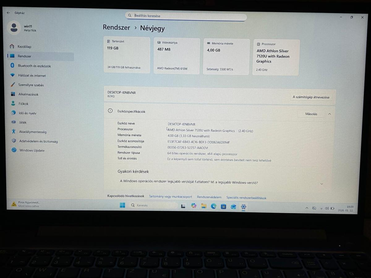 - Új készülék: gyári akkumulátor, friss telepítés, jogtiszta Windows.