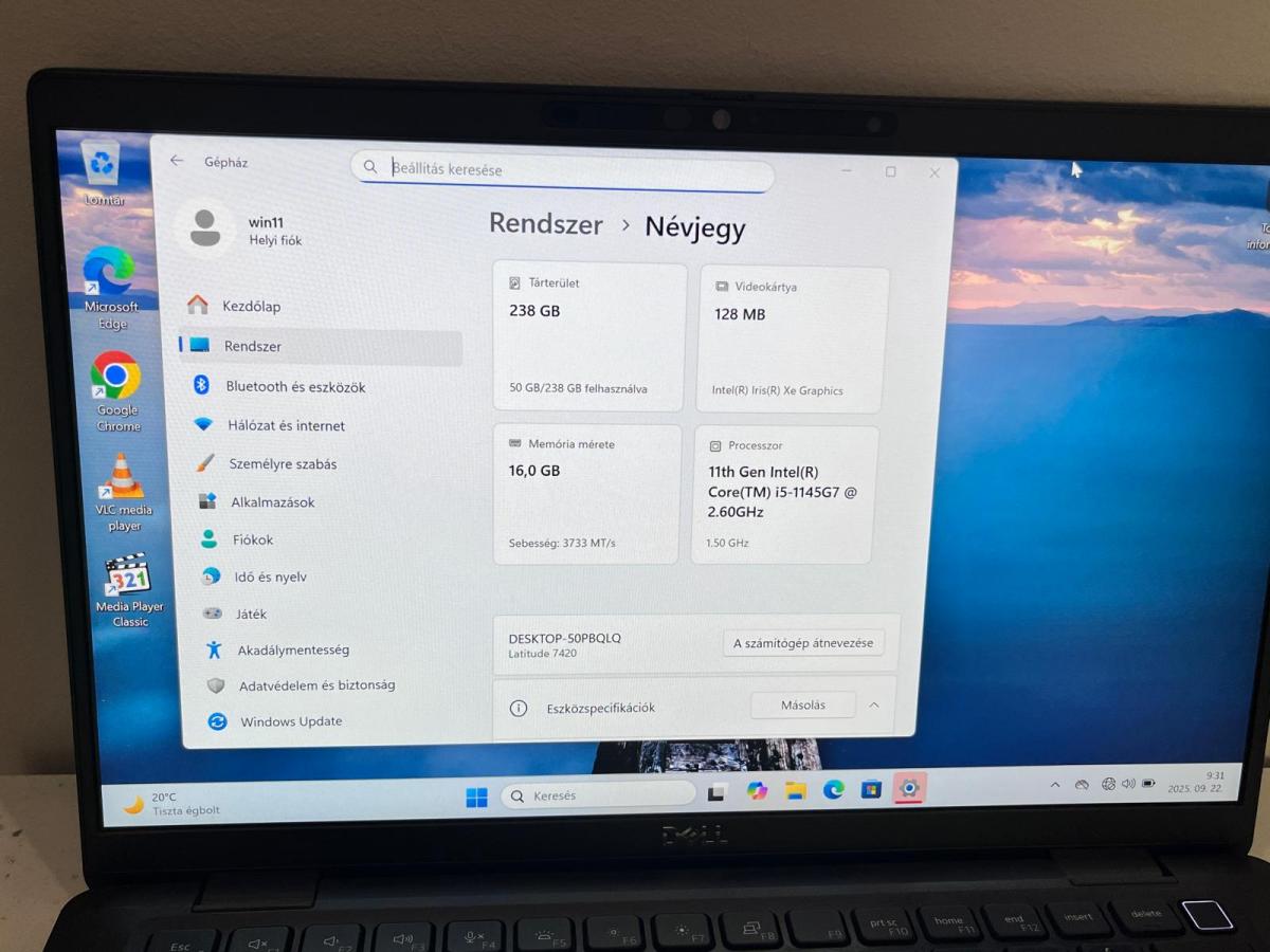 Dell Latitude 7420B kategória Core i5, 11th gen / 16GB / 256GB / SSD (M.2, NVME) / 14inch / Több, mint 1 óra , 1920*1080119 000 FtDell Latitude 7420 #12779