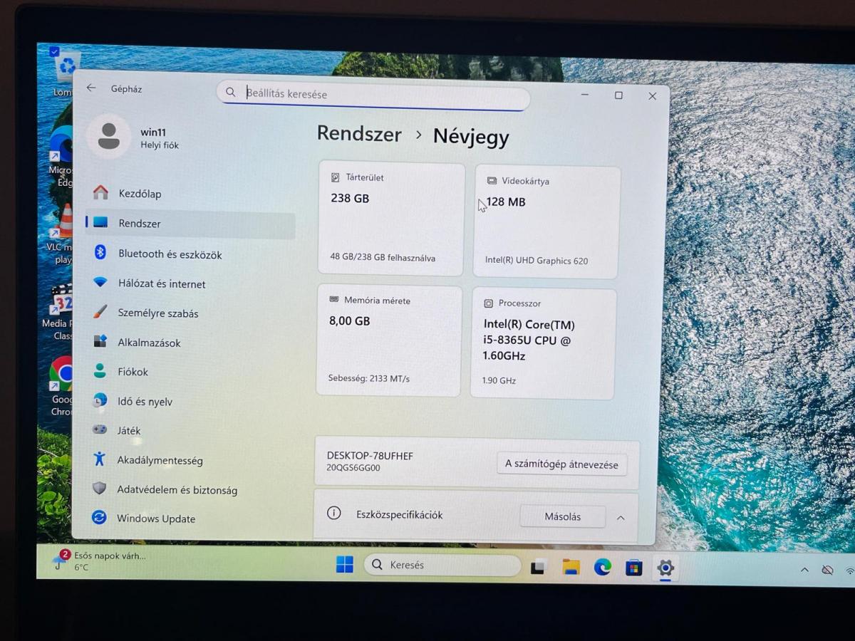 | Video vezérlő | Intel UHD Graphics 620 |